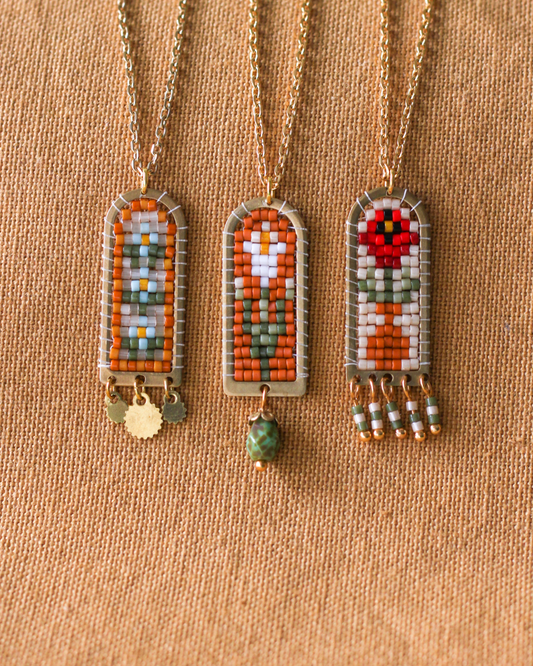 Naast de met de hand geweven statement oorbellen maak ik in KESHI studio ook andere fijne sieraden als armbanden en kettingen en als het seizoen daarom vraagt items die passen bij het jaargetij.
