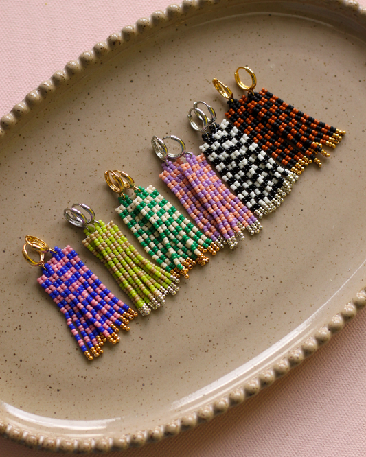 De beaded oorbellen kosten veel tijd om te maken, daardoor zijn er geen grote voorraden en maak ik deze meestal op bestelling.